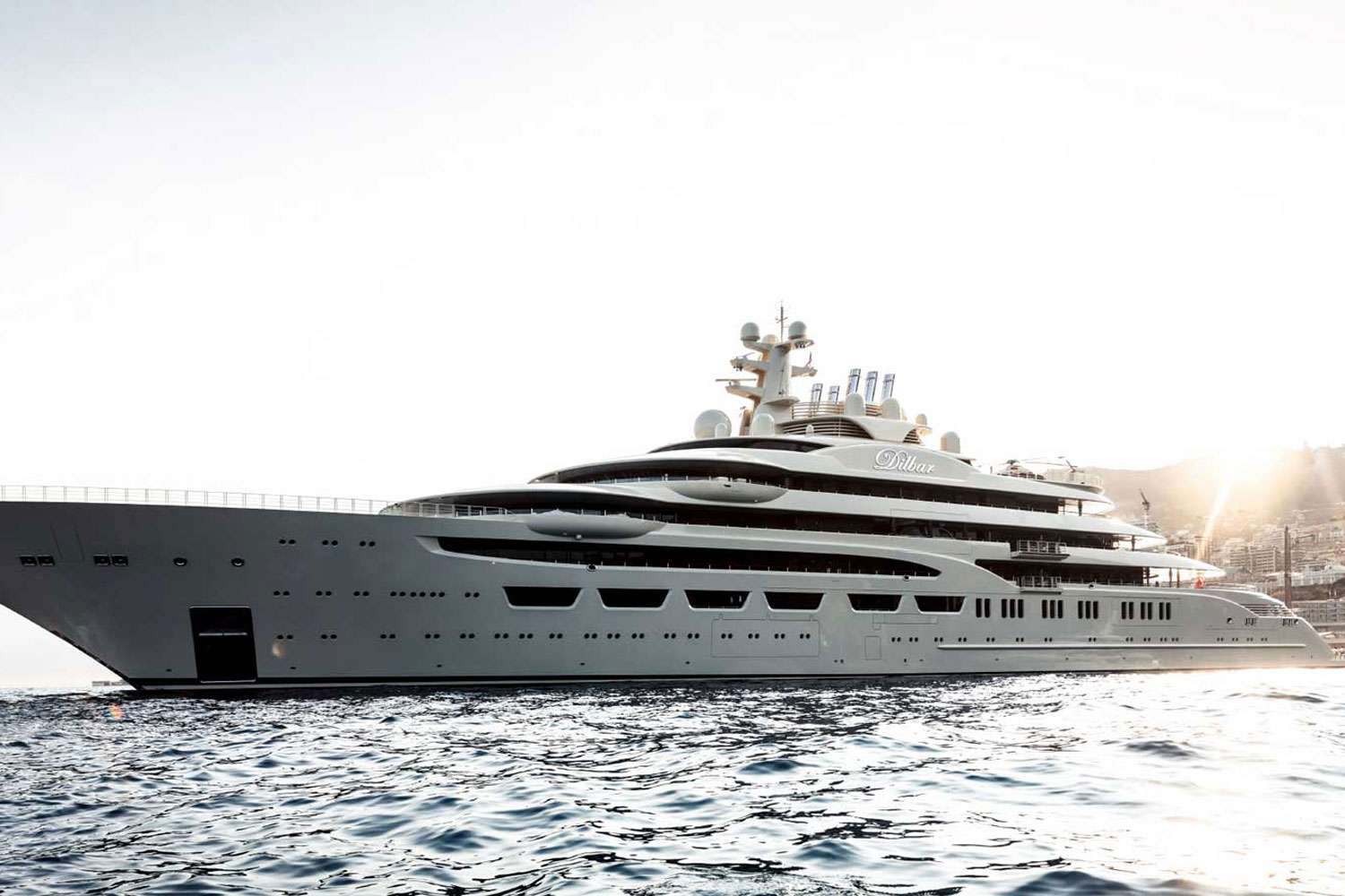 Dilbar is the fourth-longest yacht in the world (and the largest when judging by gross tonnage), can accommodate 100 crew members, has the largest ever swimming pool installed on a superyacht, two helipads, an onboard garden, almost the same amount of cables as the total land borders of the country of Bhutan (to power all the amenities and facilities) and is powered by a 30,000kw electric diesel power plant.