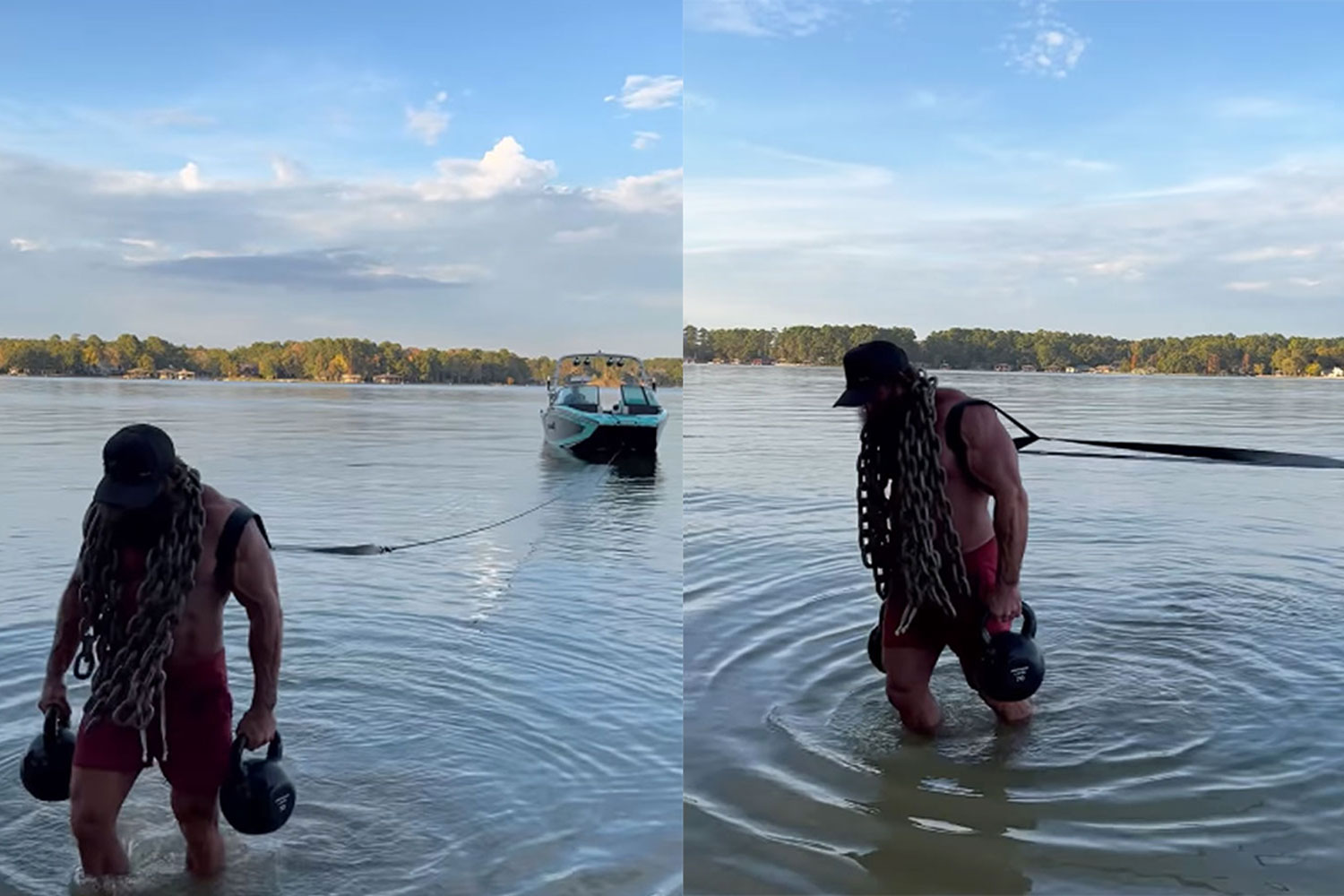 “Before I spend the day on the boat, you better believe I’m pulling it across the lake first… bare feet slipping in the mud… chains around my neck and kettlebells in both hands…”