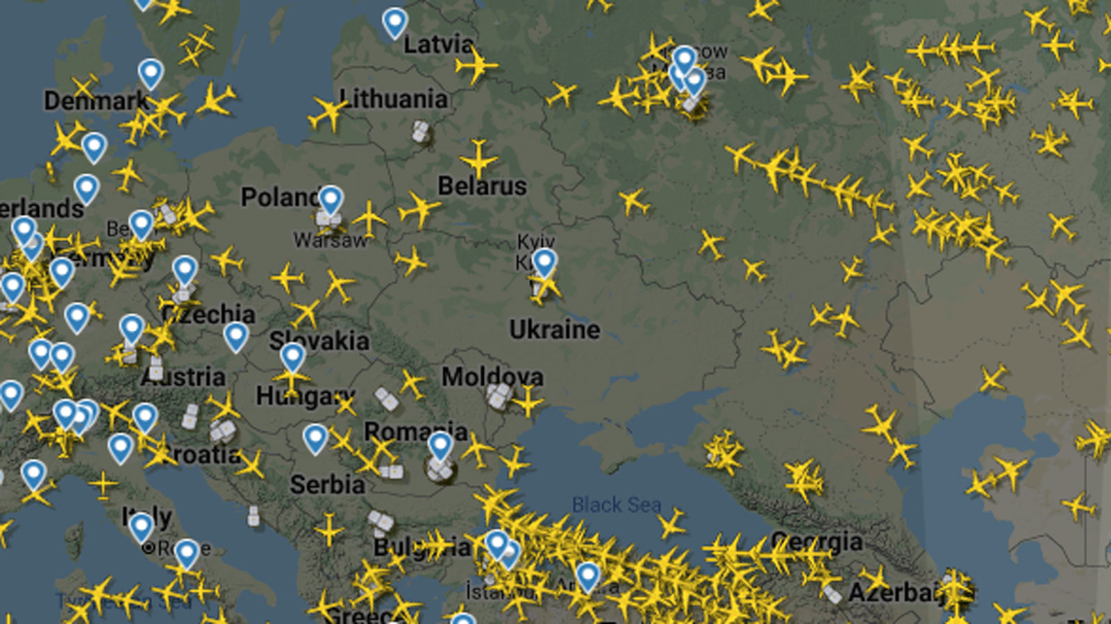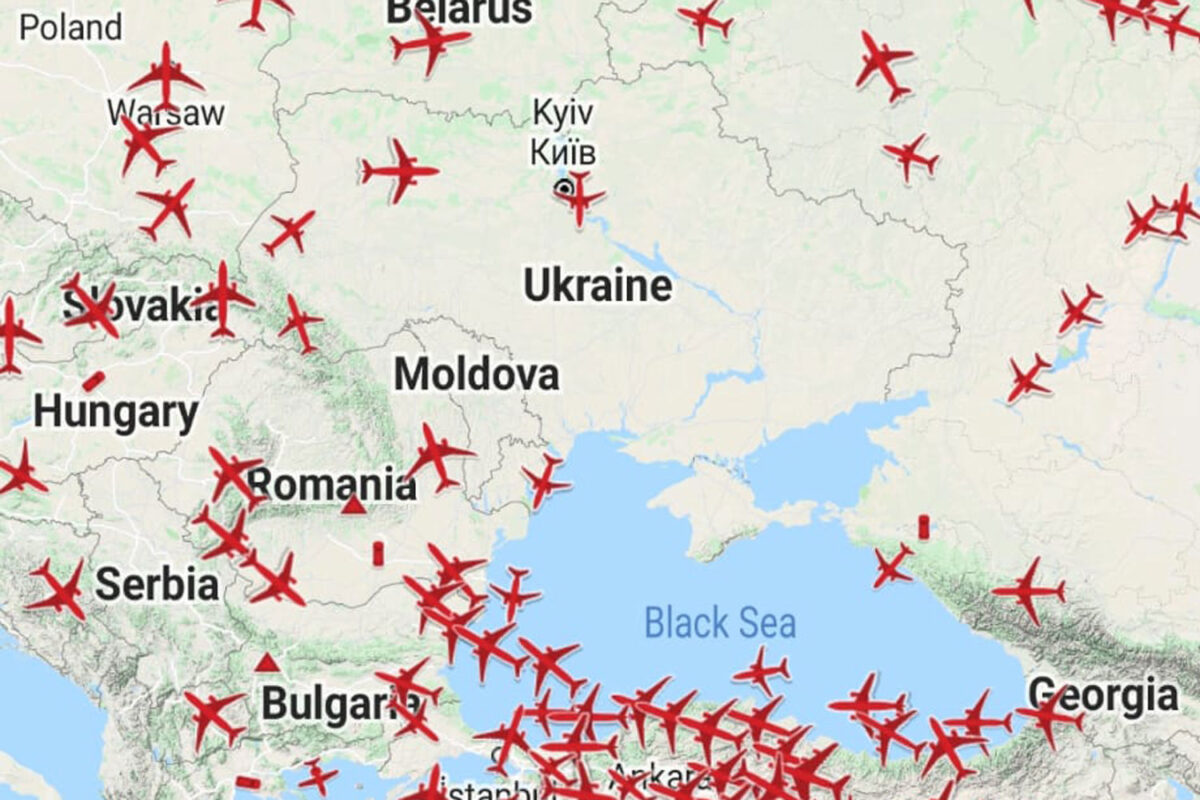 Both Flightradar24 and Plane Finder, live flight tracking sites, show commercial flights are giving Ukraine a wide berth.