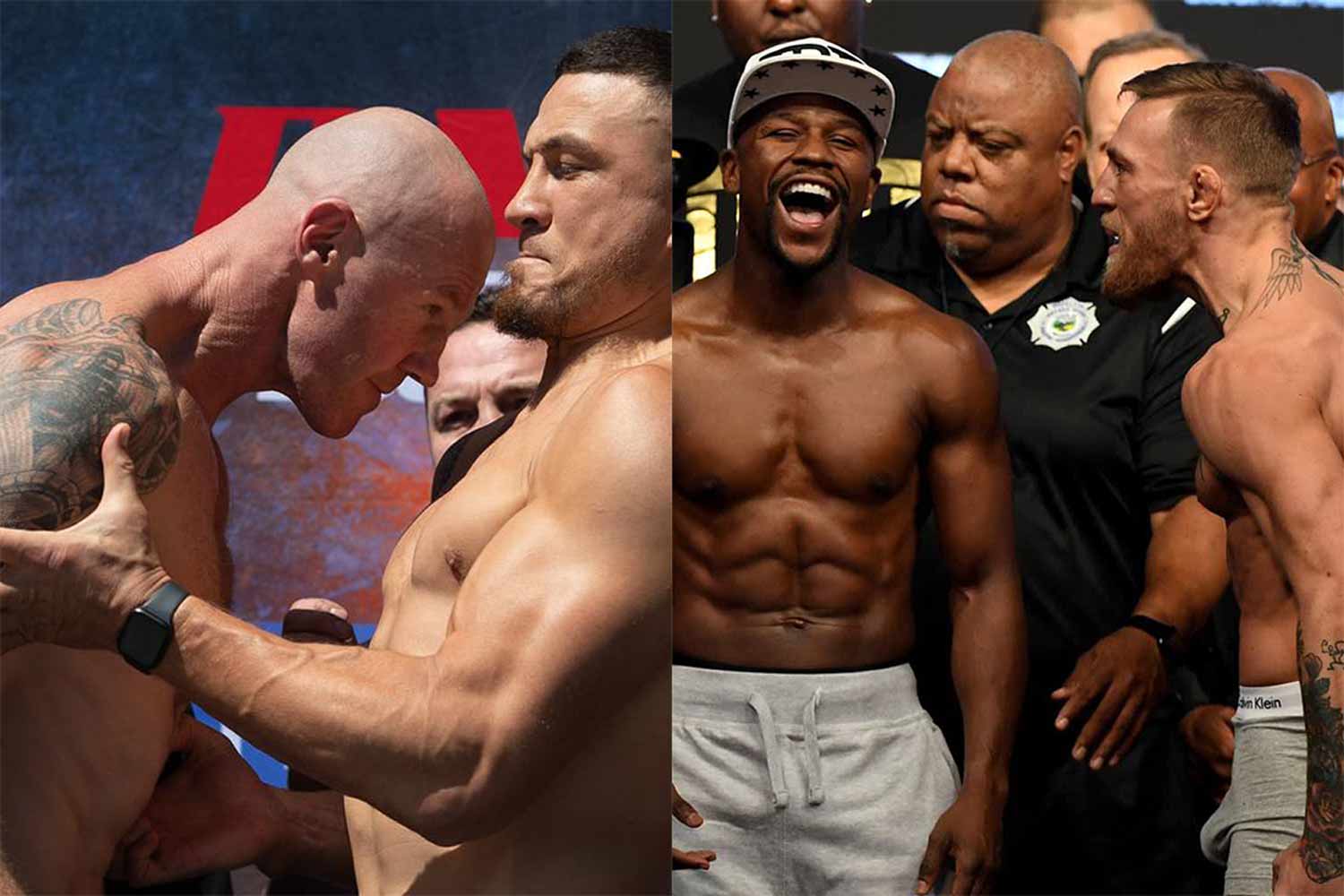 History hasn’t been kind to fighters who are dickheads at their weigh-in. From Barry Hall headbutting Sonny Bill Williams ahead of their fight last night, to Conor McGregor yelling in Mayweather’s face during their 2017 weigh-in (and wearing a pin-striped f**k you suit in a previous encounter), it seems, based on these two examples at least, that being a dickhead at the weigh-in doesn’t bode well for your fighting chances.