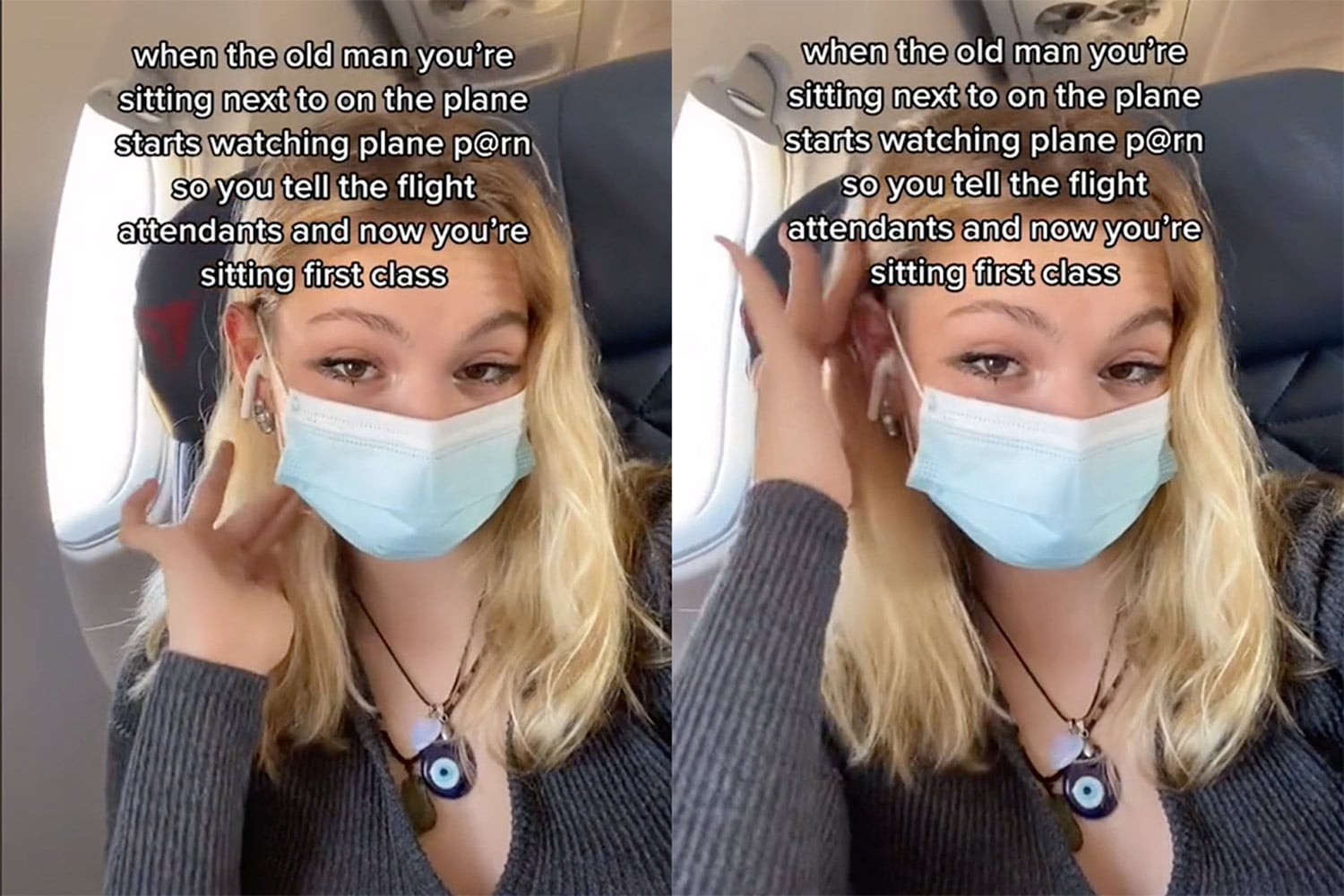 The video, which Melanie Scholfield (@a1iengir1 on TikTok) posted to social media in the aftermath of the incident, has 662.1k views. She captioned the clip: “When the old man you’re sitting next to on the plane starts watching plane p@rn so you tell the flight attendants and now you’re sitting [in] first class.”
