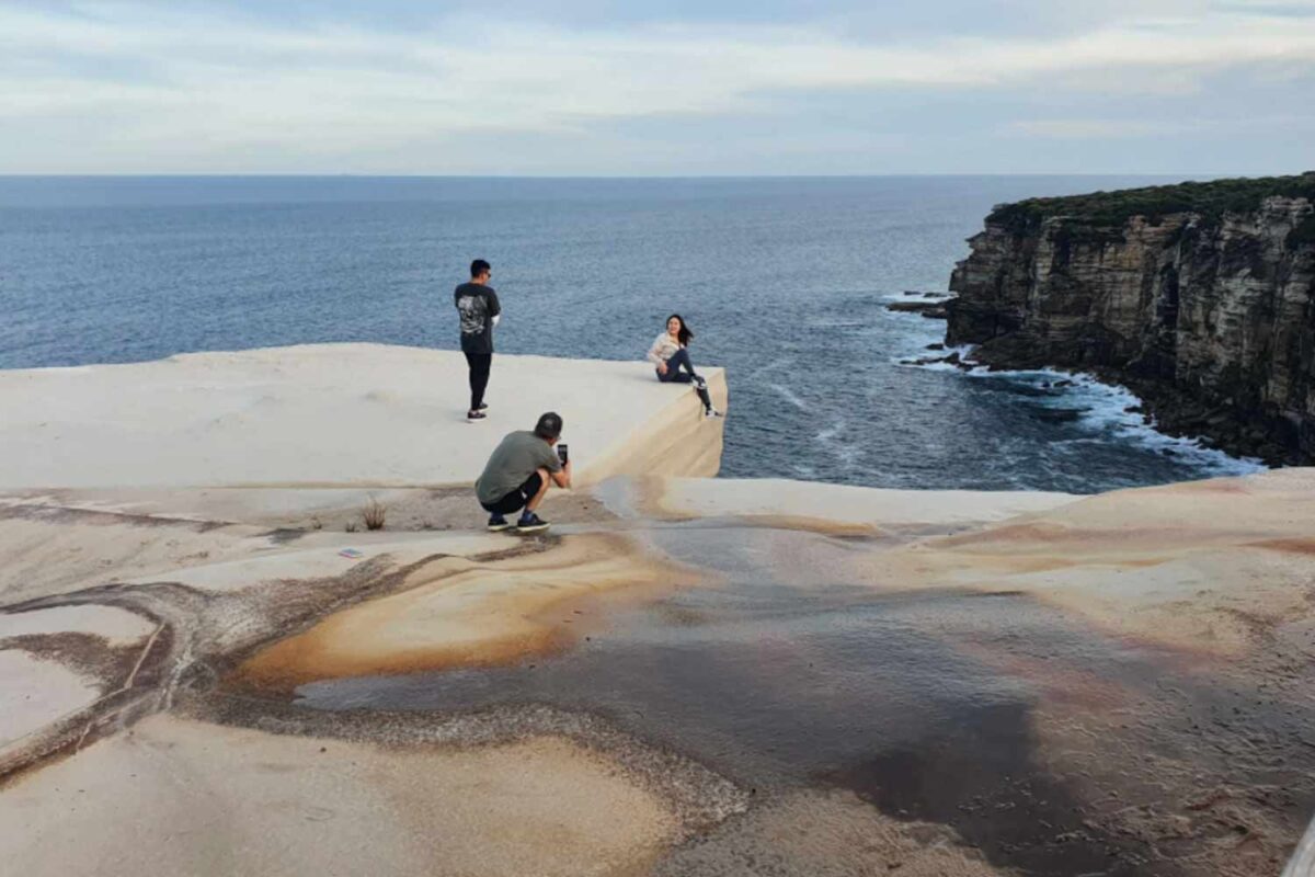 A group of sightseers have awoken the fingers of Sydney’s keyboard warriors, incurring the wrath of Reddit’s r/sydney community by posing for photos on Wedding Cake Rock.