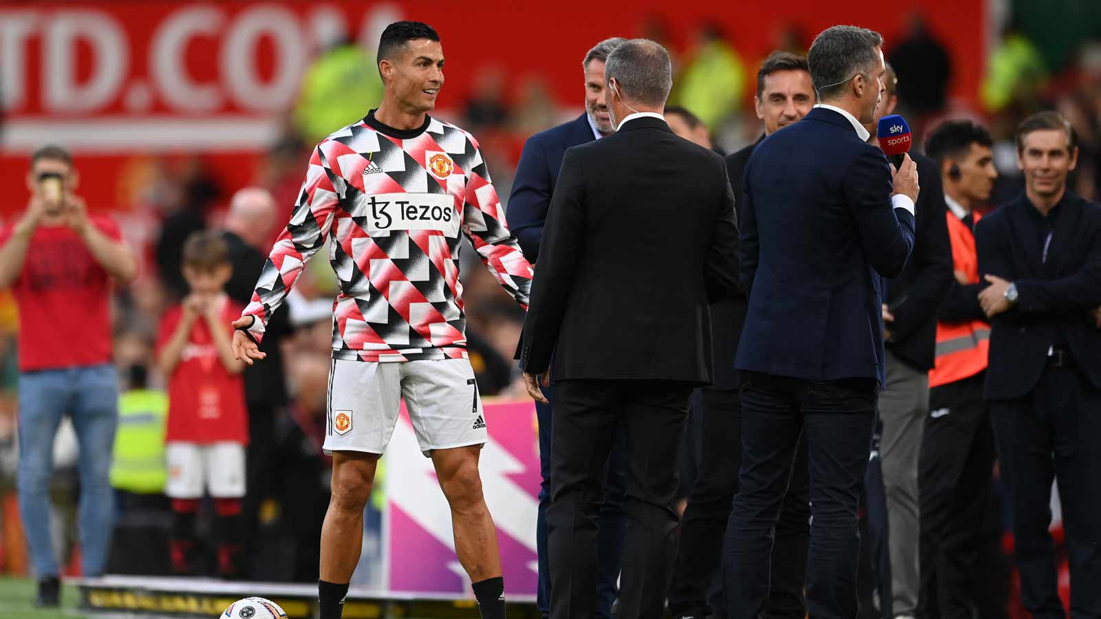 Cristiano Ronaldo has snubbed football pundit Jamie Carragher, instead choosing to properly greet only Roy Keane and Gary Neville, and then returning to his warm-up.