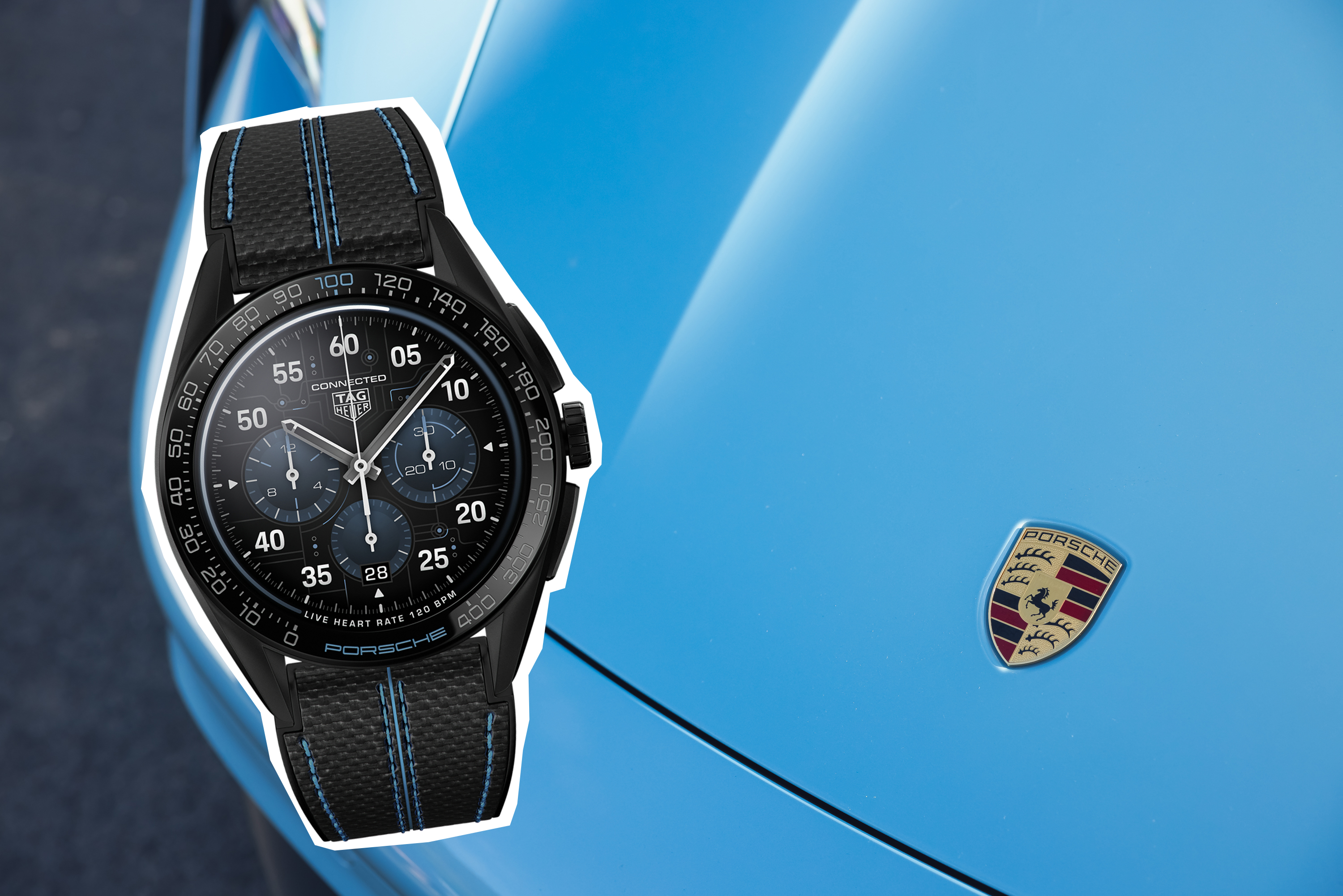 Not only does the Porsche Edition feature a slick frozen blue colour scheme and circuit-board-like dial design – inspired by Porsche’s high-tech Taycan electric car – but if you own a Porsche, you can connect your watch to your car and see information about your whip displayed as ‘complications’ on the watch face.