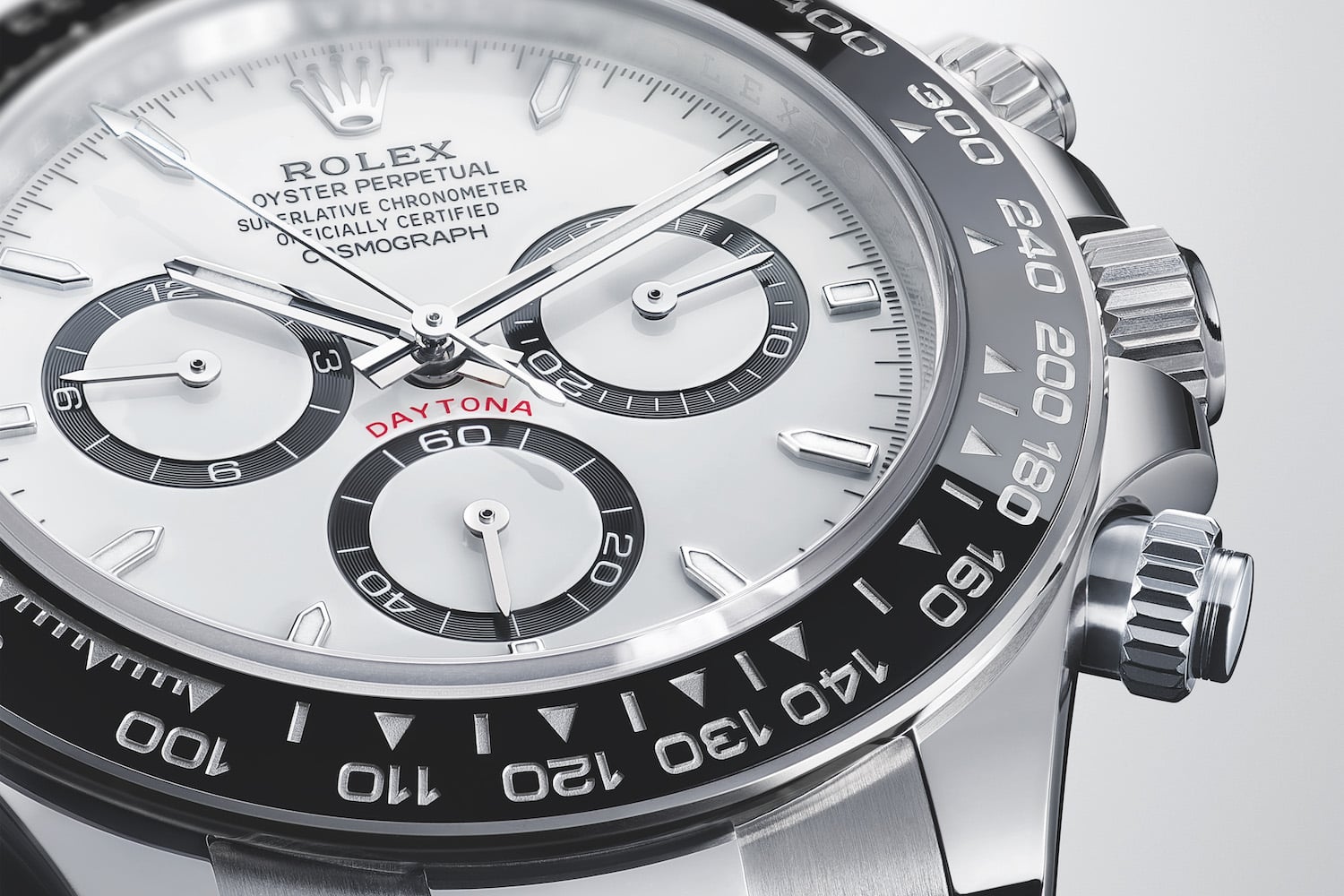 The Rolex Cosmograph Daytona hardly needs an introduction. Introduced in 1963, the Daytona was created to meet the singular demands of the professional race car driver. Today, it's one of the world's most coveted watches. In its current incarnation, the watch features a patented in-house chronograph mechanism and a bezel with a tachymetric scale – perfect for recording your lap times, or how long someone stares at your Rolex.