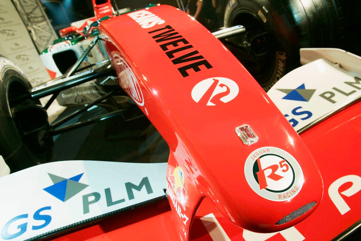 A $440k AUD Steinmetz diamond set into the nose of a Jaguar Racing Formula 1 car to promote Oceans Twelve. Image: Getty Images