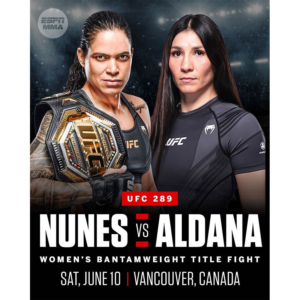 Aldana was installed as Pena’s replacement and she will challenge Amanda Nunes for the UFC women’s bantamweight championship at UFC 289 on June 10, 2023, in Canada.